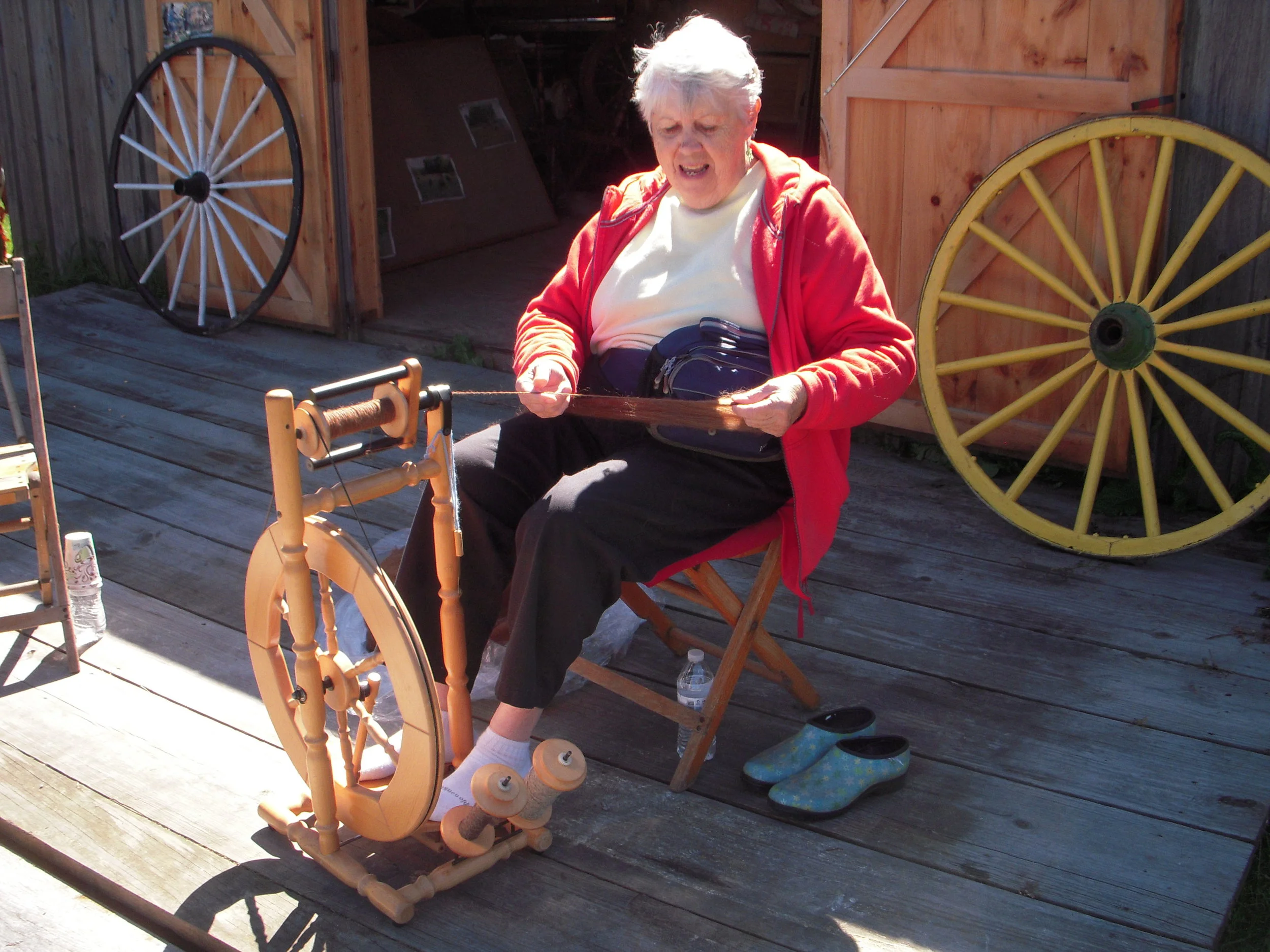 Frieda is a local spinner who is at the show grounds (just up the road from Journey's End) every September. This year she needed more roving to spin into yarn, so we brought her some from Zander and Kan. She was excited to have Journey's End alpaca fleece and said, "It spins beautifully!"